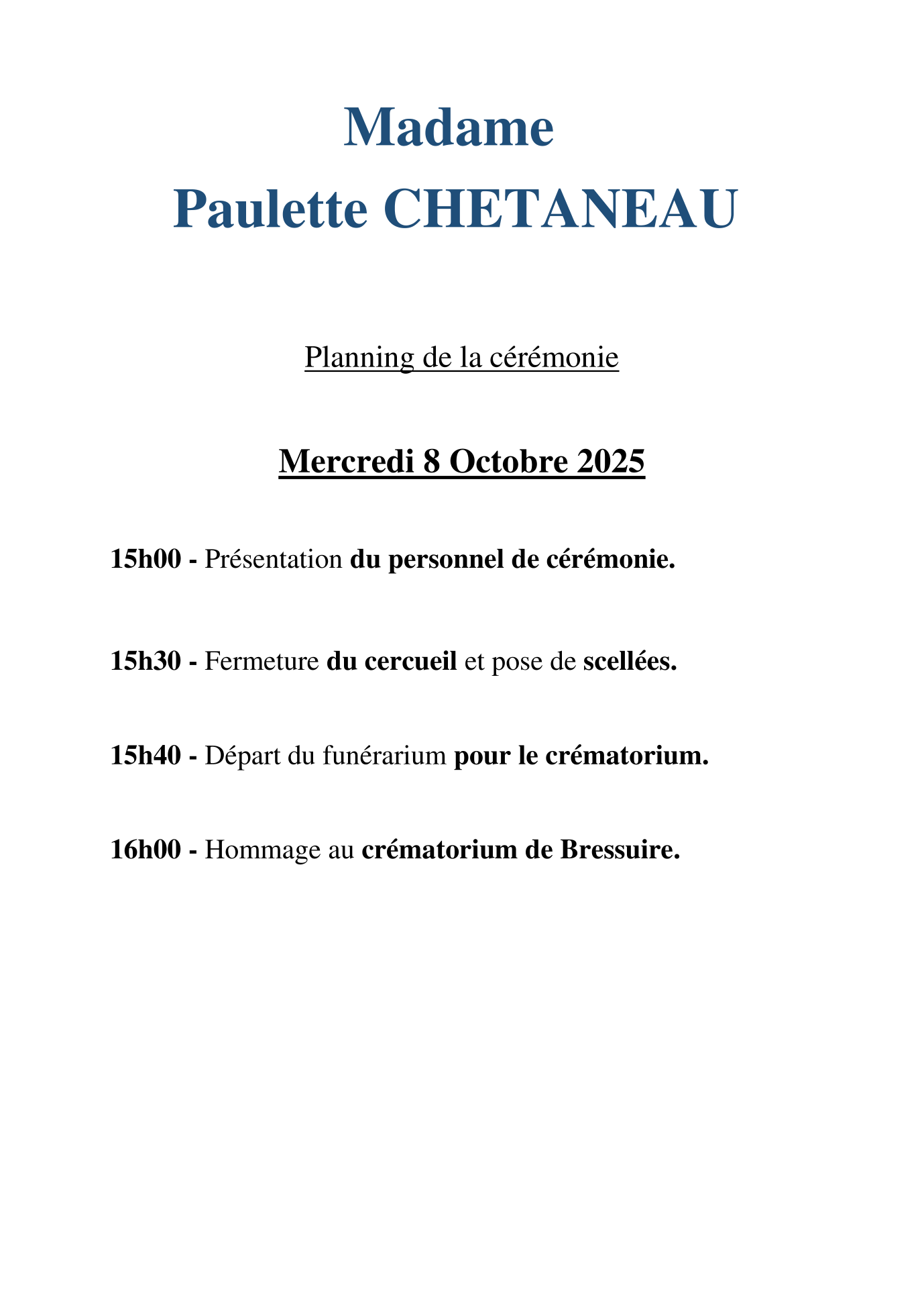 Madame Paulette CHETANEAU