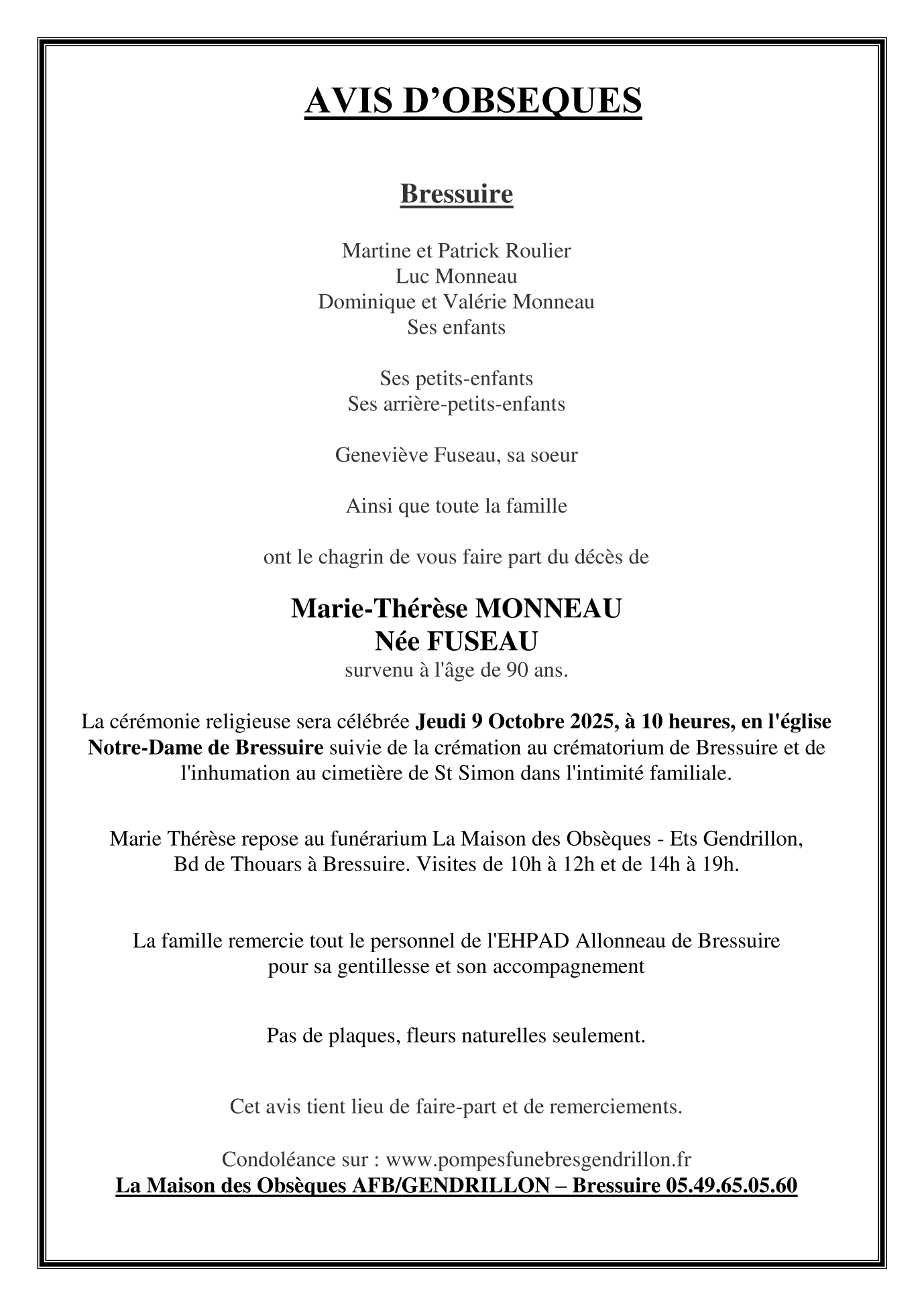 Madame Marie-Thérèse MONNEAU née FUSEAU