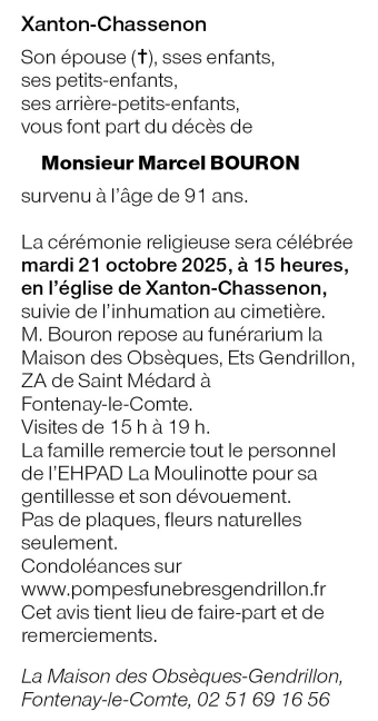 Né à Xanton-Chassenon (85240, France) le jeudi 13 septembre 1934