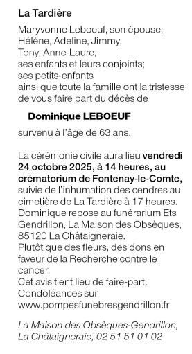 Décédé à La Roche-sur-Yon (85000, France) le mardi 21 octobre 2025 à l'âge de 63 ans