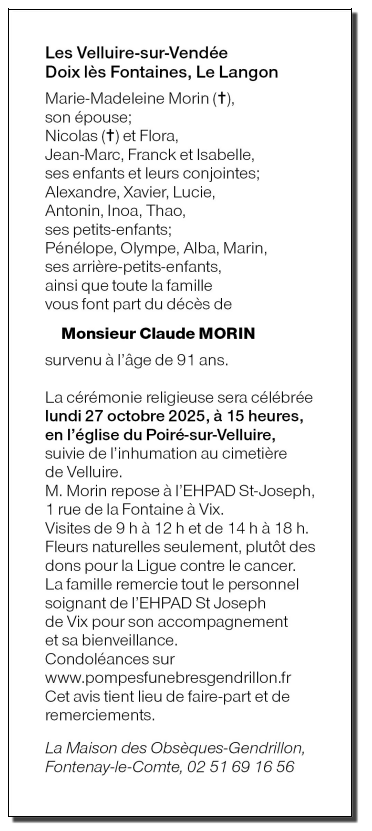 Décédé à Vix (85770, France) le vendredi 24 octobre 2025 à l'âge de 91 ans
