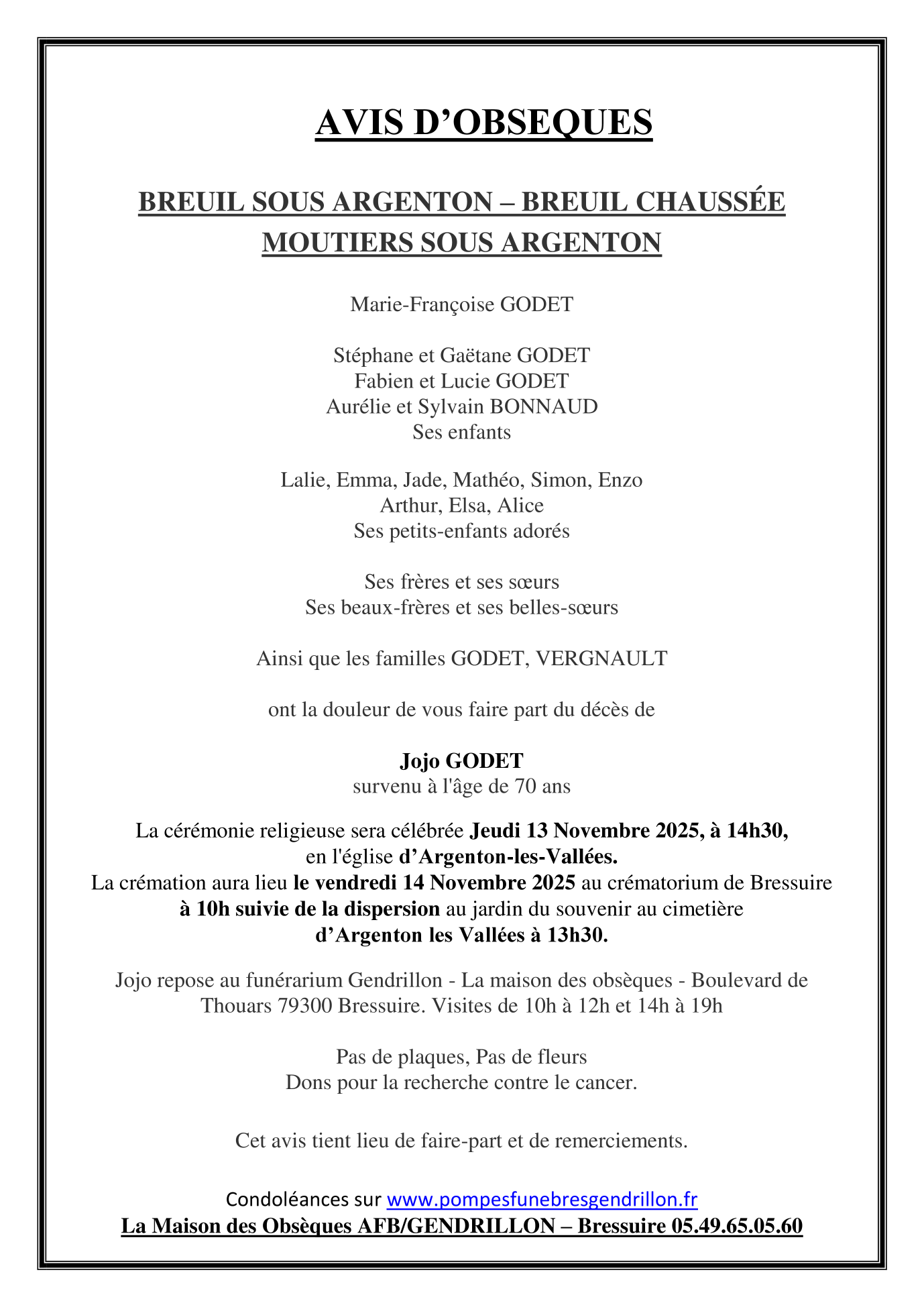 Décédé à Poitiers (86000, France) le lundi 10 novembre 2025 à l'âge de 70 ans