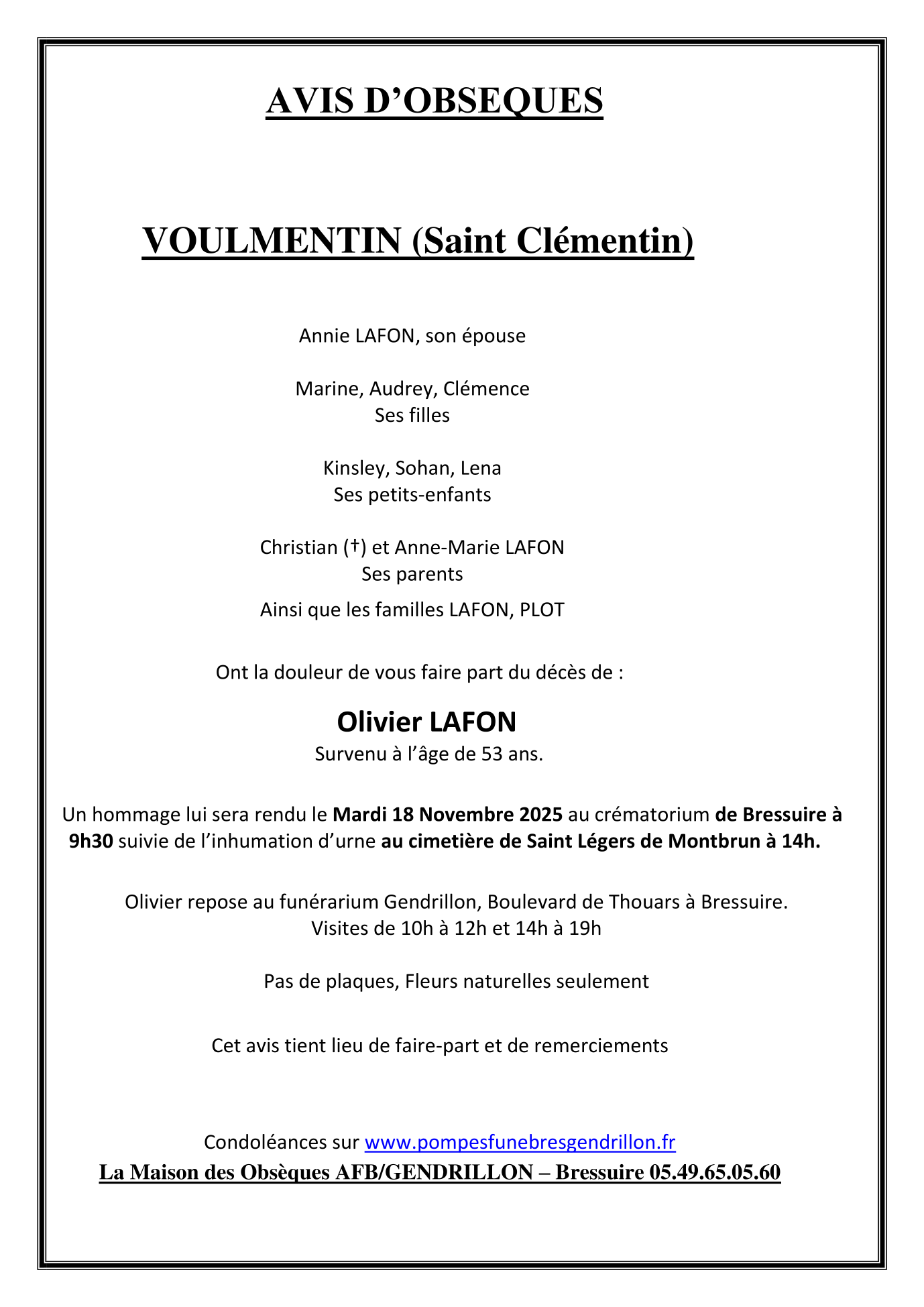 Décédé à Cholet (49300, France) le vendredi 14 novembre 2025 à l'âge de 53 ans