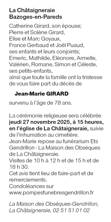 Décédé à La Châtaigneraie (85120, France) le dimanche 23 novembre 2025 à l'âge de 78 ans