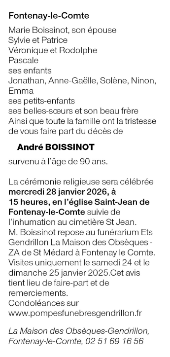Décédé à La Chaize-le-Vicomte (85310, France) le jeudi 22 janvier 2026 à l'âge de 90 ans