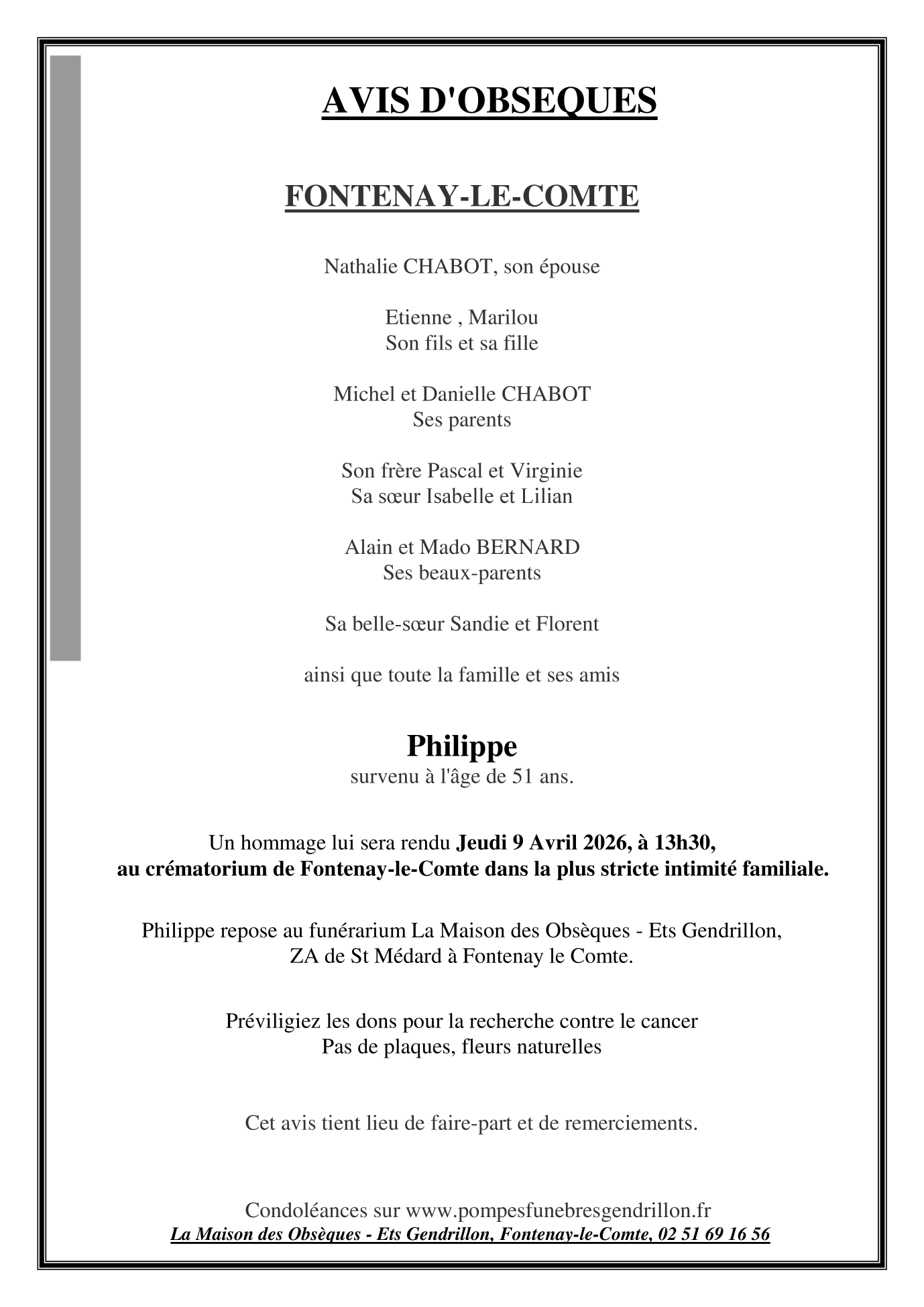 Décédé à Saint Herblain Cedex (44803, France) le vendredi 3 avril 2026 à l'âge de 51 ans
