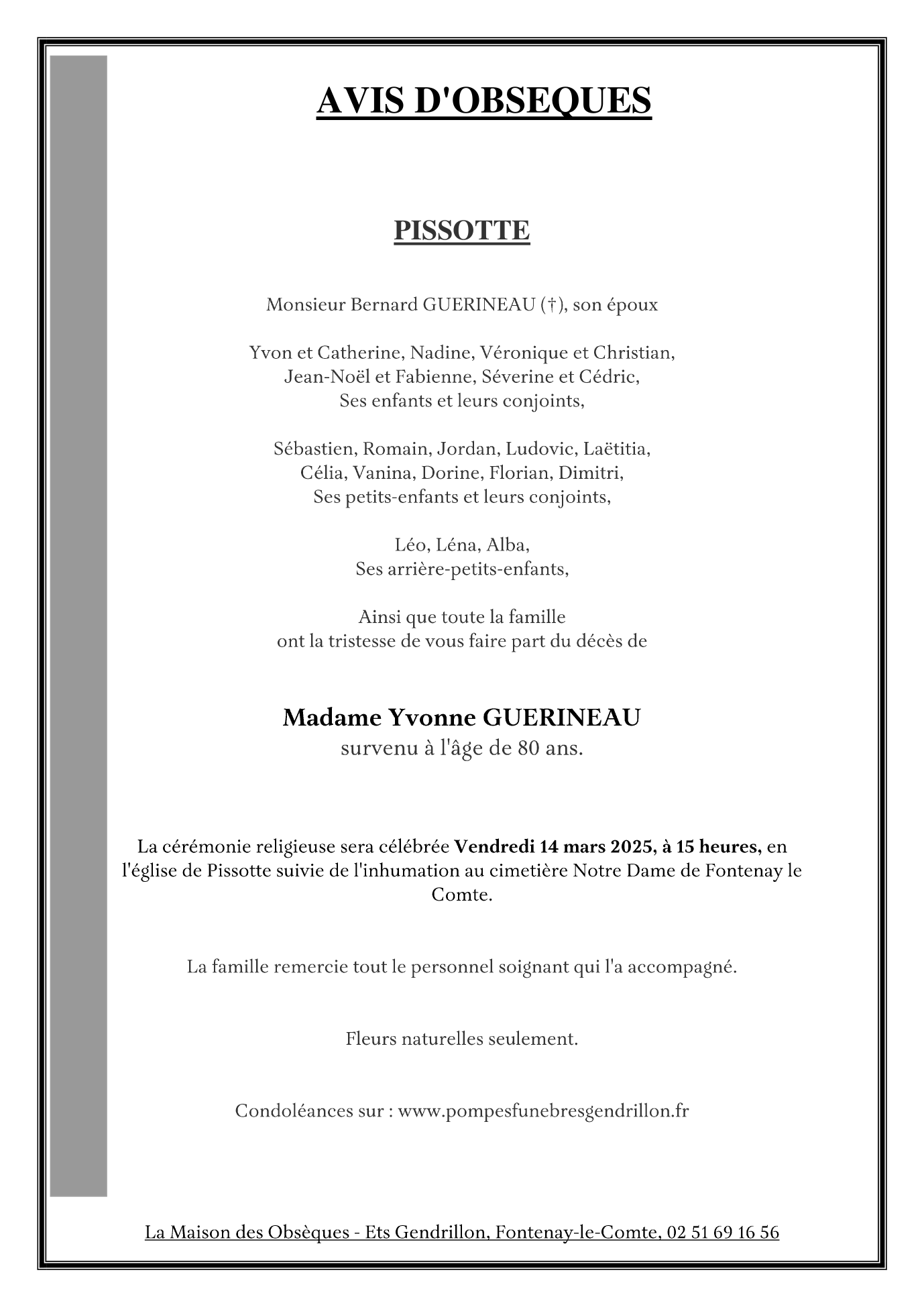 Veuve de Monsieur Bernard GUERINEAU