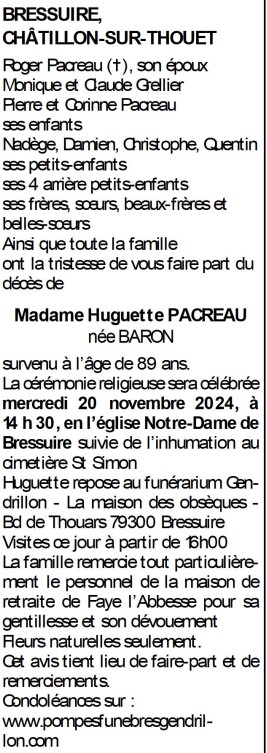 Madame Huguette PACREAU née BARON