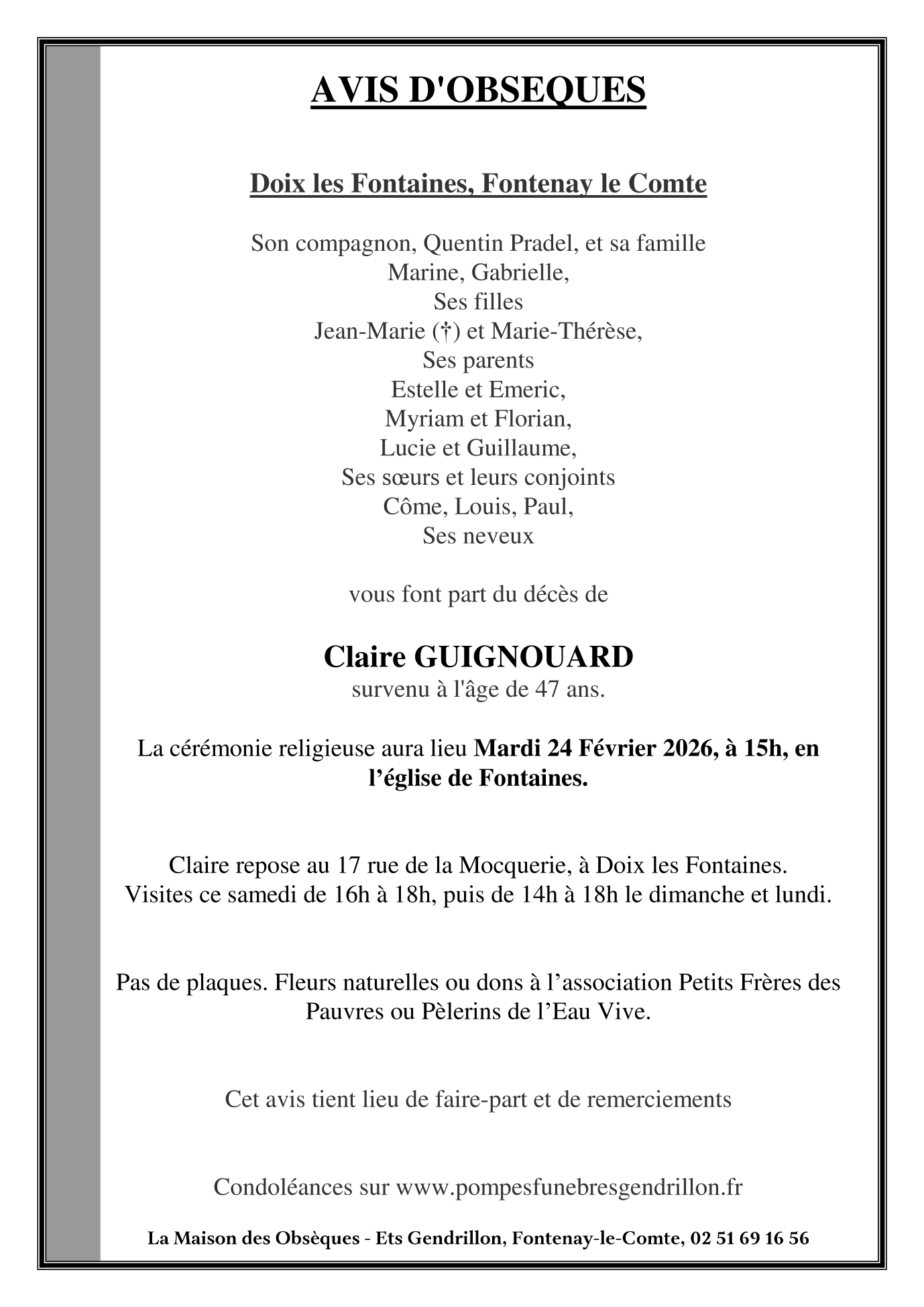 Décédée à Saint-Herblain (44800, France) le jeudi 19 février 2026 à l'âge de 47 ans