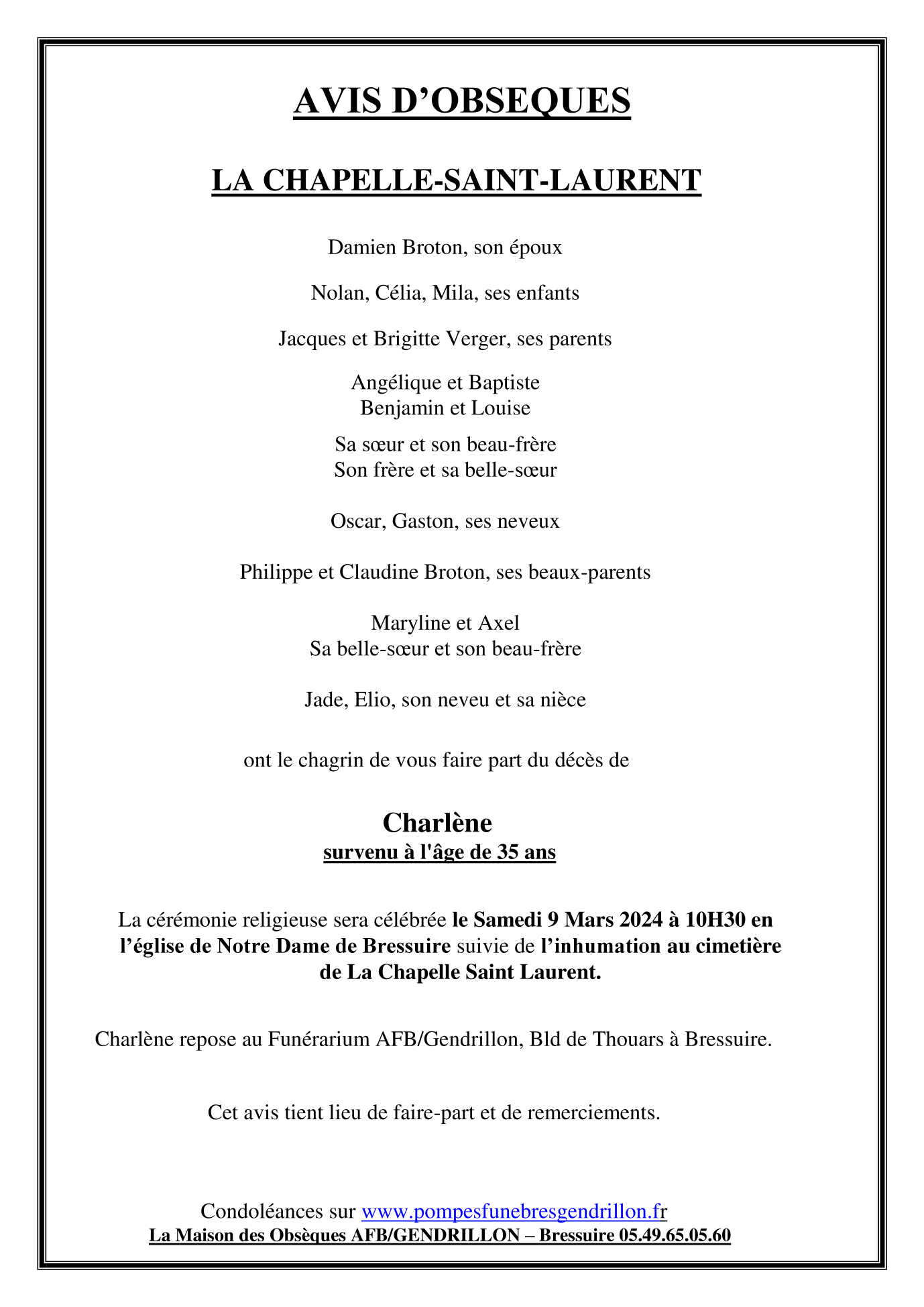 Décédée à Bressuire (79300, France) le mardi 5 mars 2024 à l'âge de 35 ans