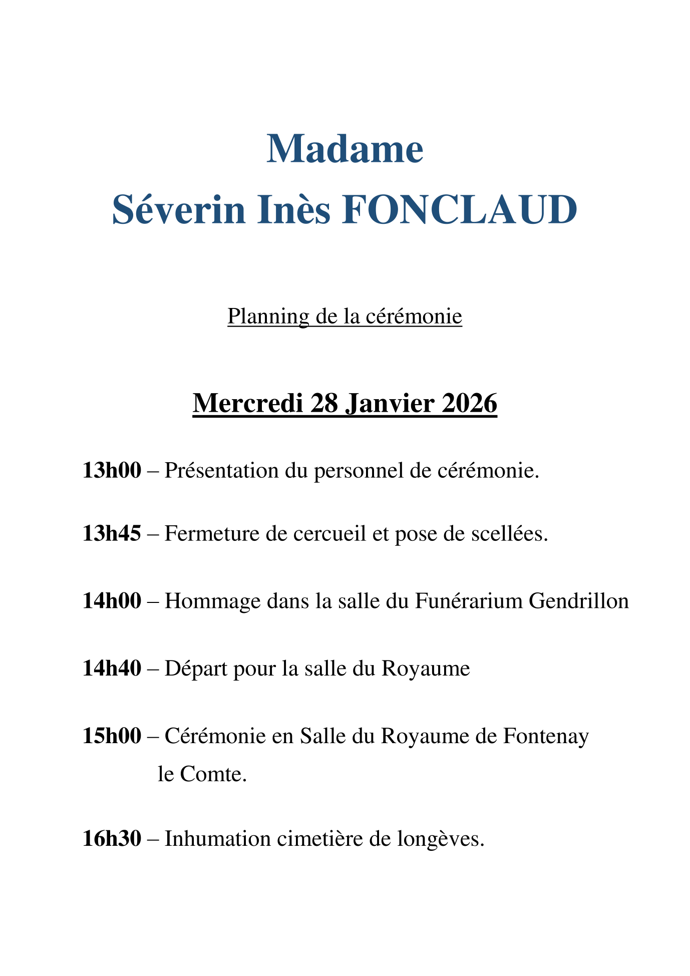 Décédée à Longèves (85200, France) le samedi 24 janvier 2026 à l'âge de 75 ans