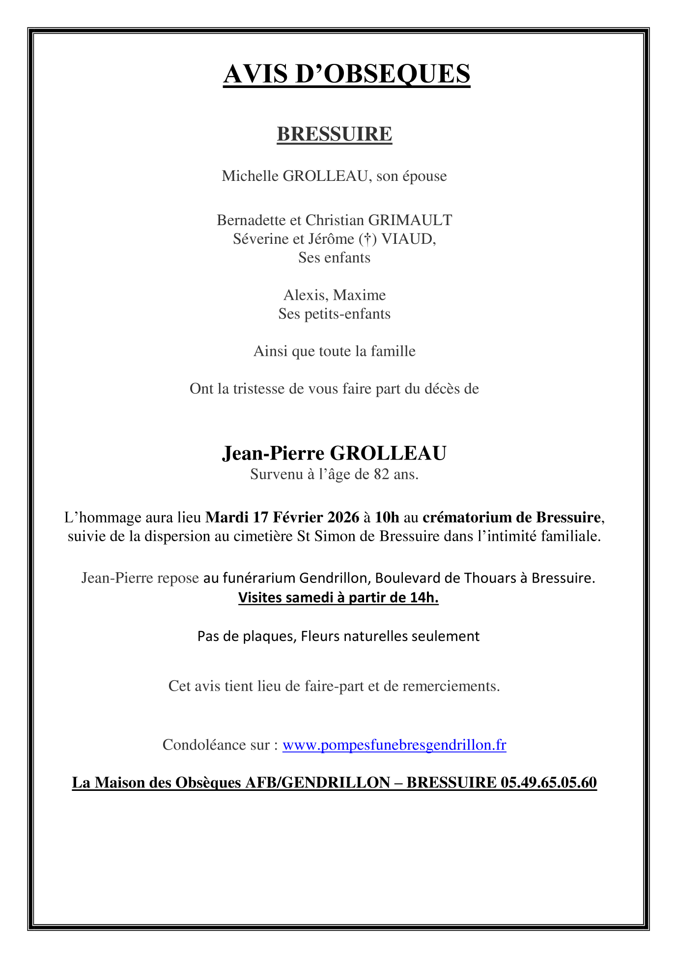 Monsieur Jean-Pierre GROLLEAU
