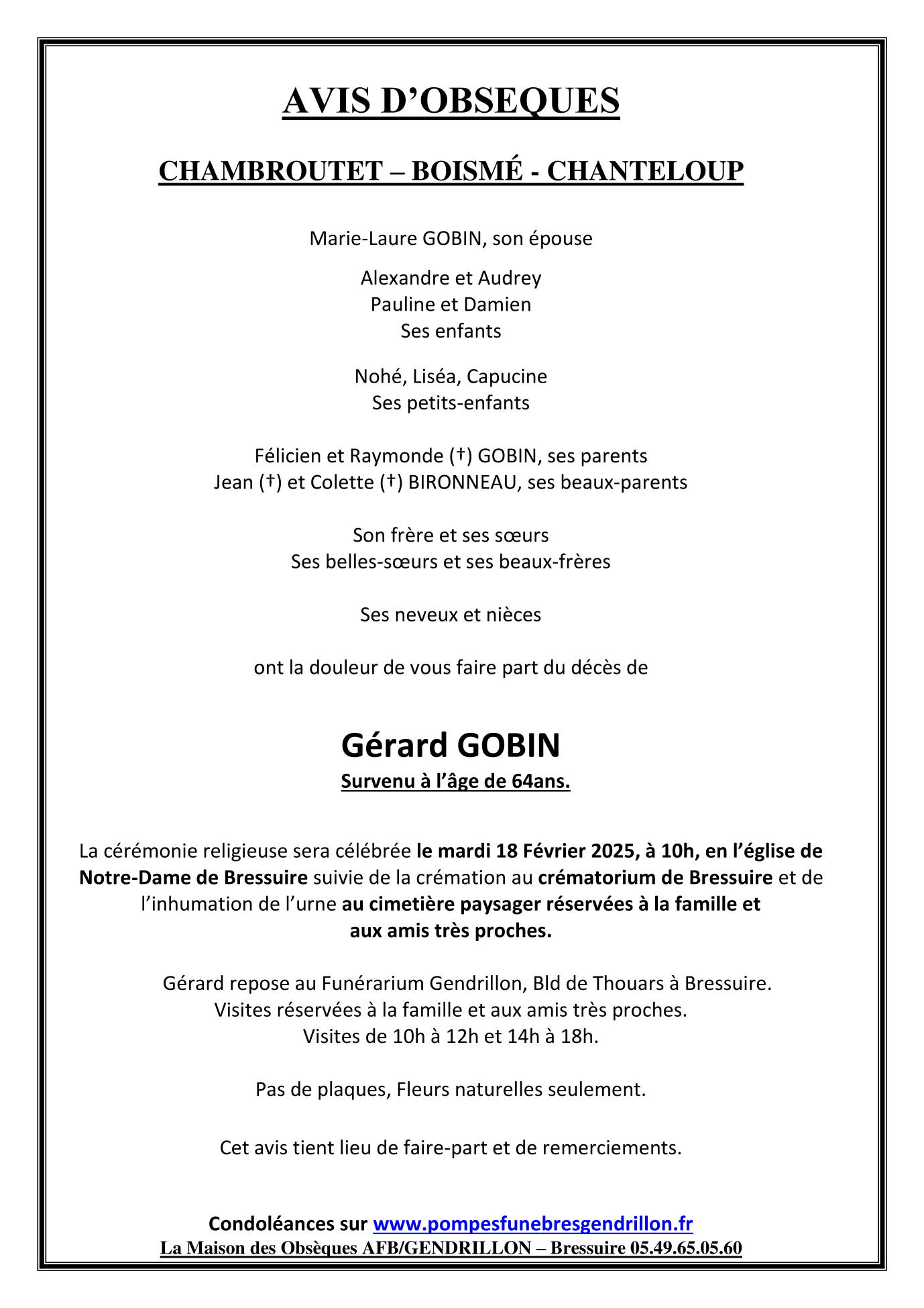 Décédé à Bressuire (79300, France) le lundi 3 février 2025 à l'âge de 64 ans