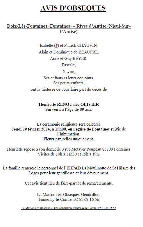 Madame Henriette RENOU née OLIVIER