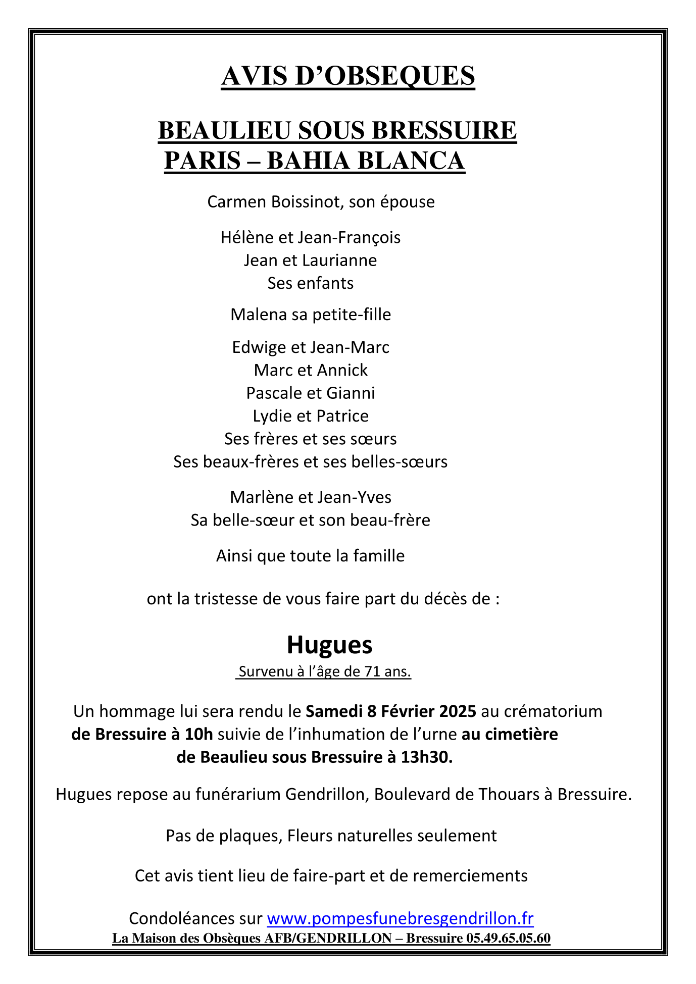 Décédé à Niort (79000, France) le mardi 4 février 2025 à l'âge de 71 ans