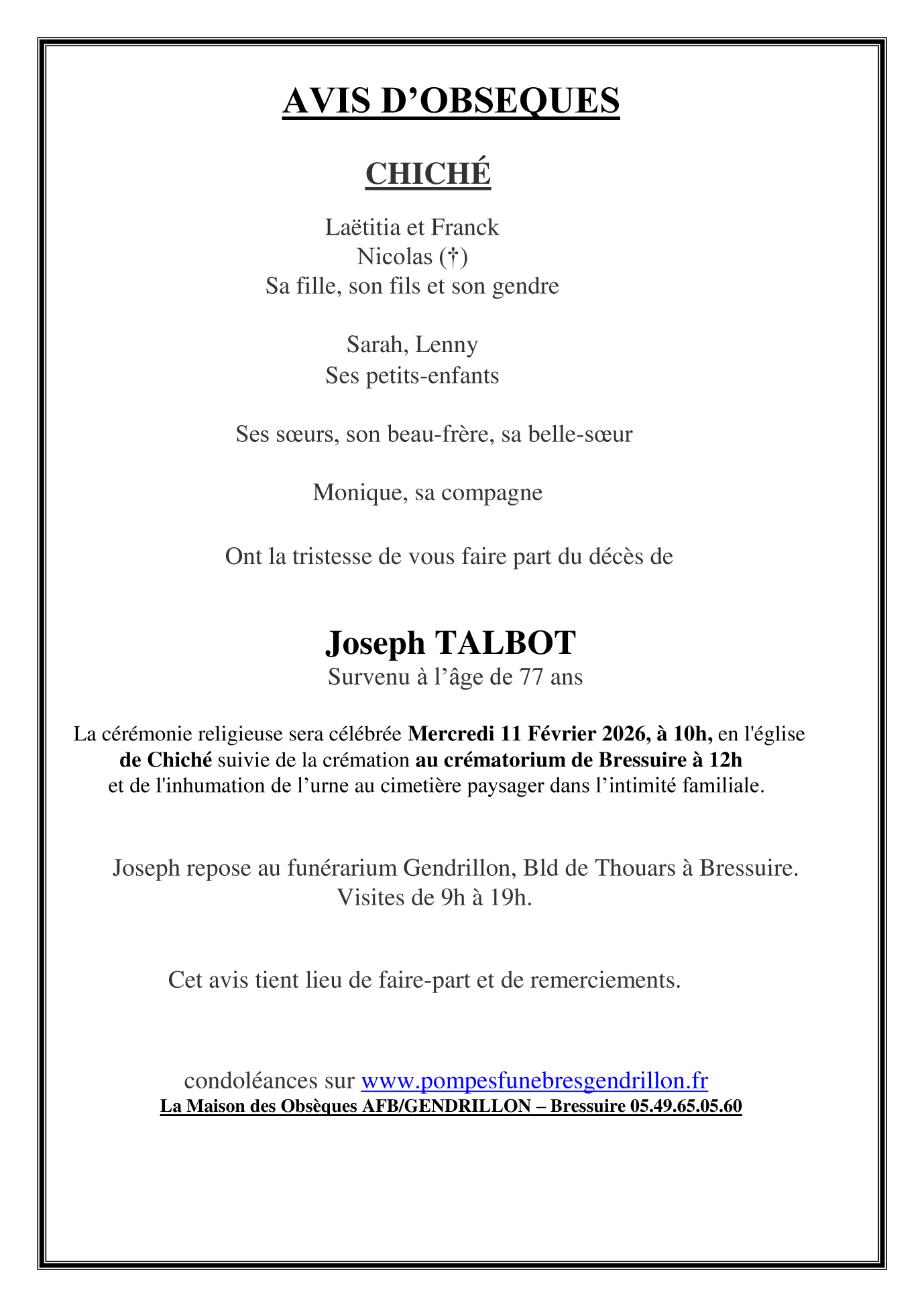 Monsieur JOSEPH TALBOT