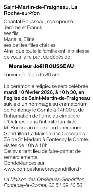 Décédé à La Châtaigneraie (85120, France) le vendredi 6 février 2026 à l'âge de 80 ans