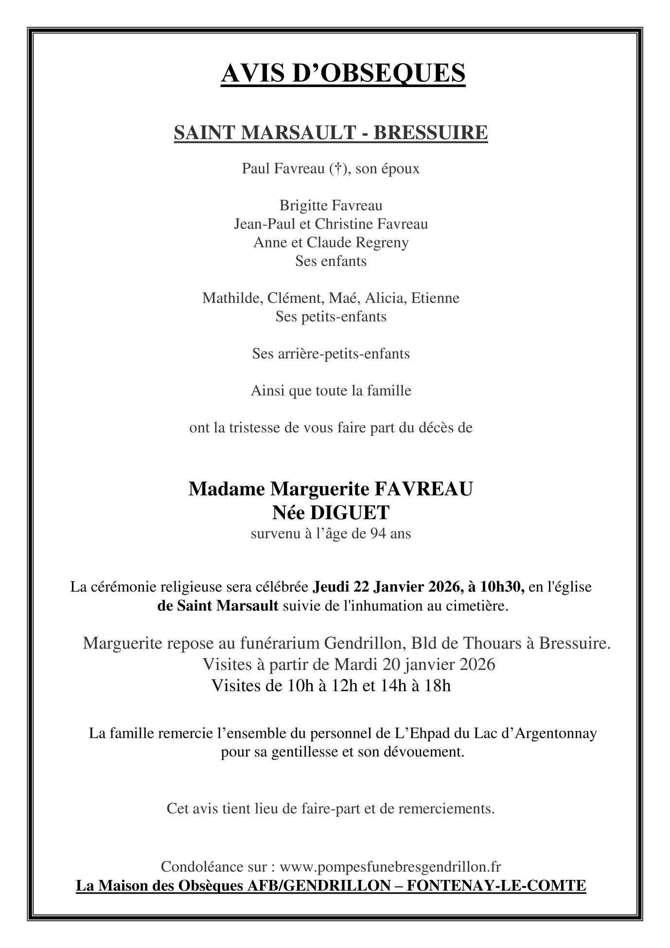 Veuve de Monsieur PAUL FAVREAU