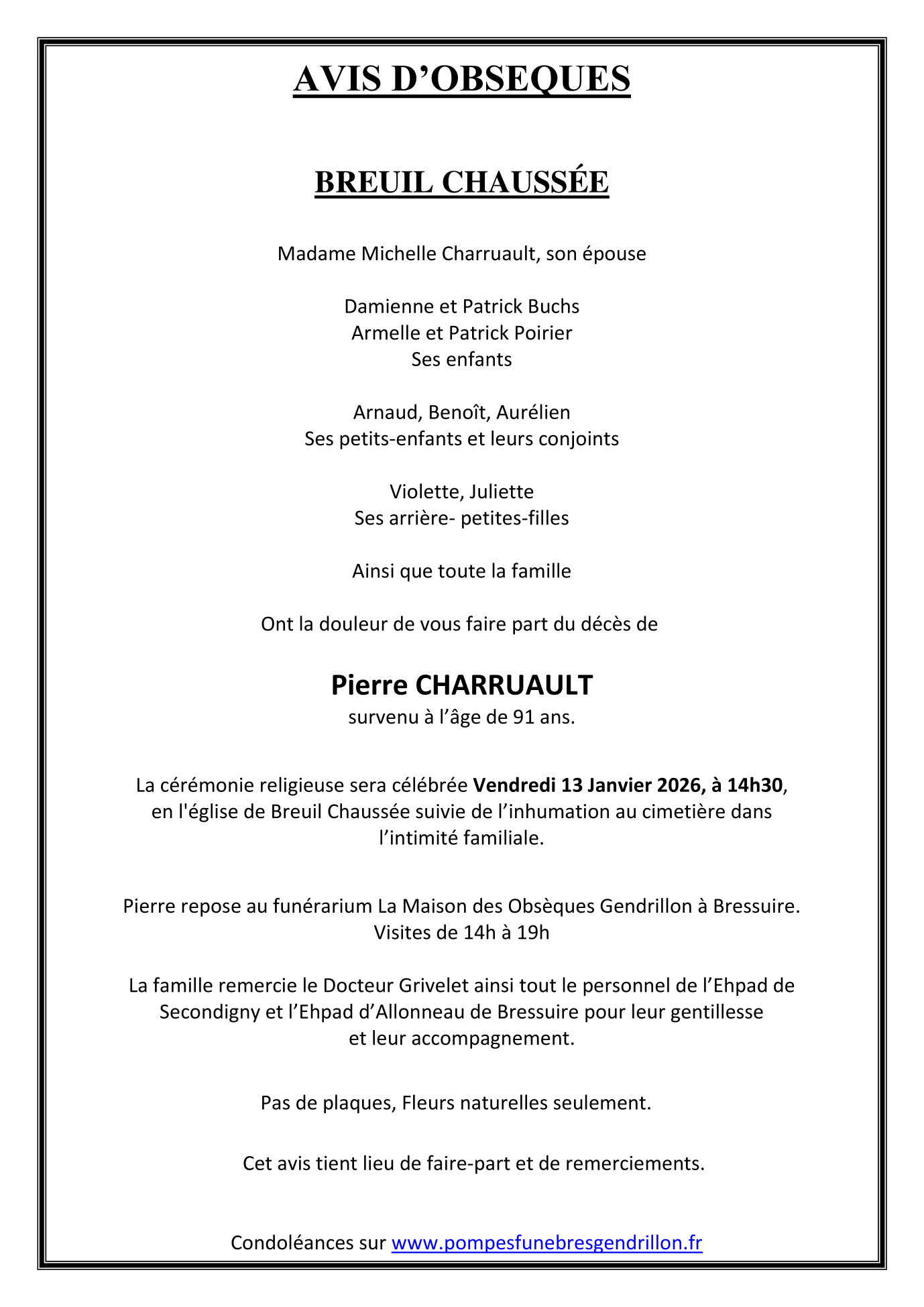 Décédé à Bressuire (79300, France) le mardi 10 février 2026 à l'âge de 91 ans