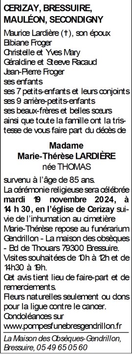 Veuve de Monsieur Maurice LARDIERE
