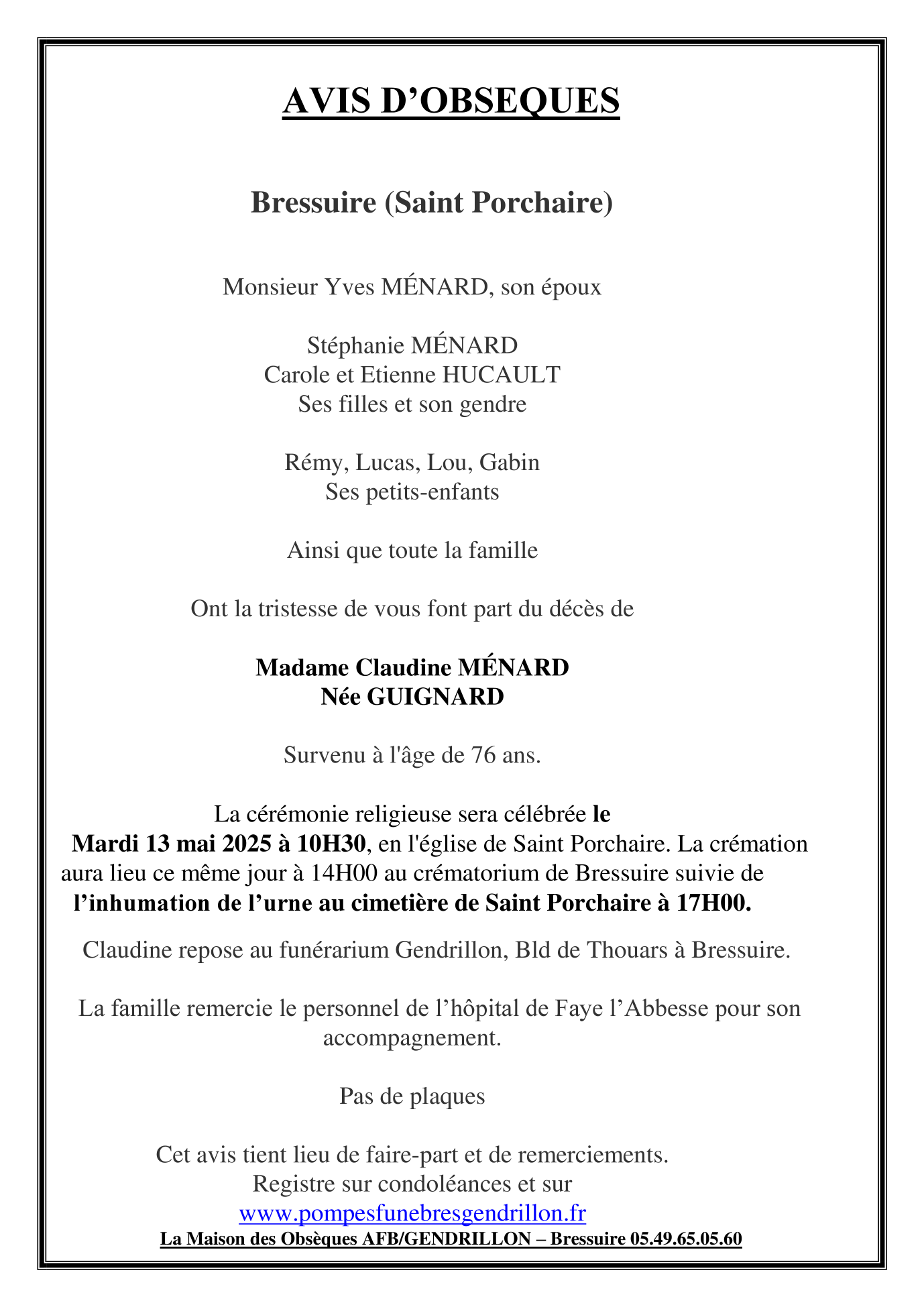 Annonce nécrologique