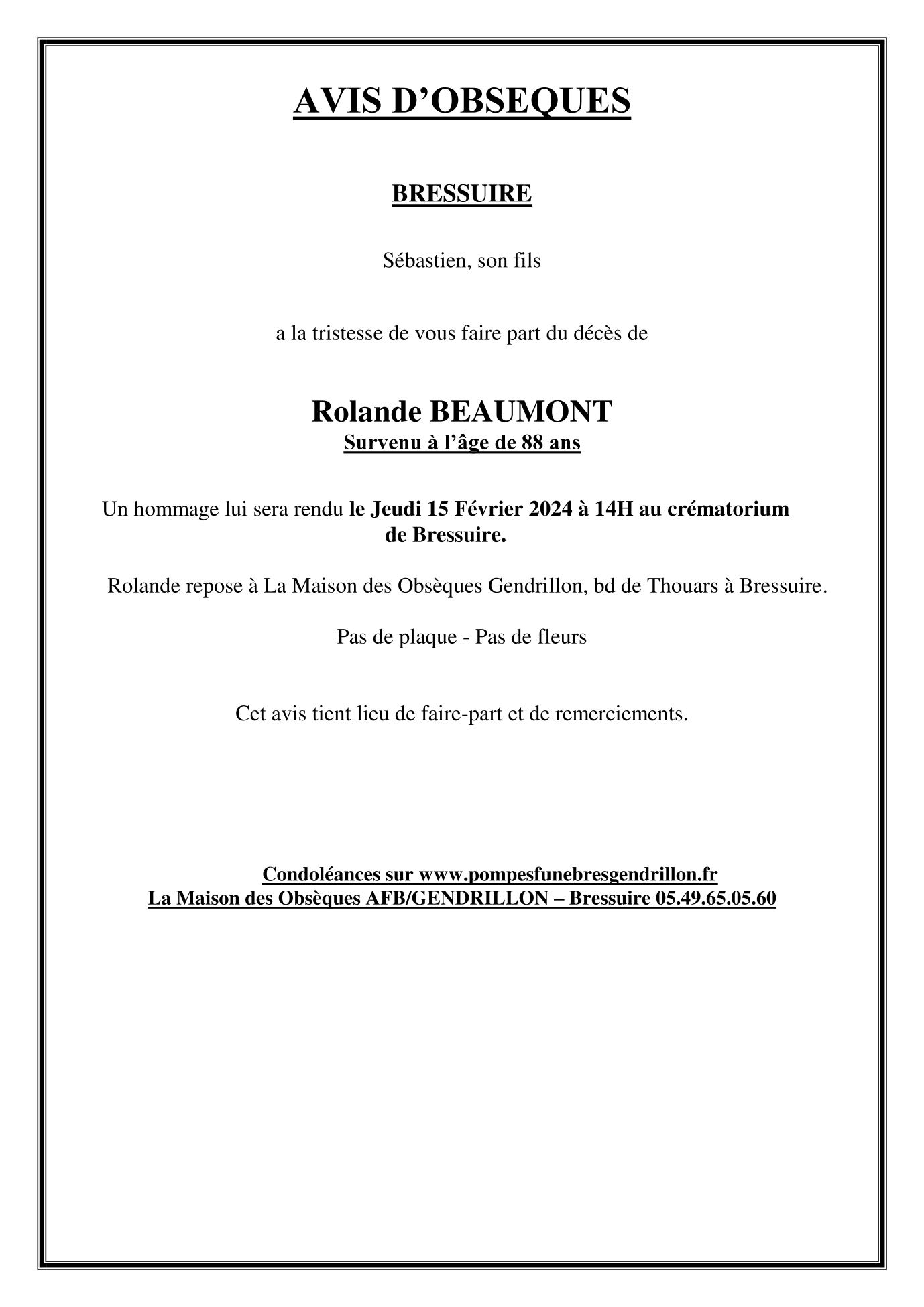 Annonce nécrologique
