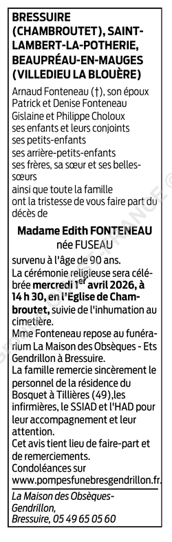 Madame Edith Fonteneau née FUSEAU