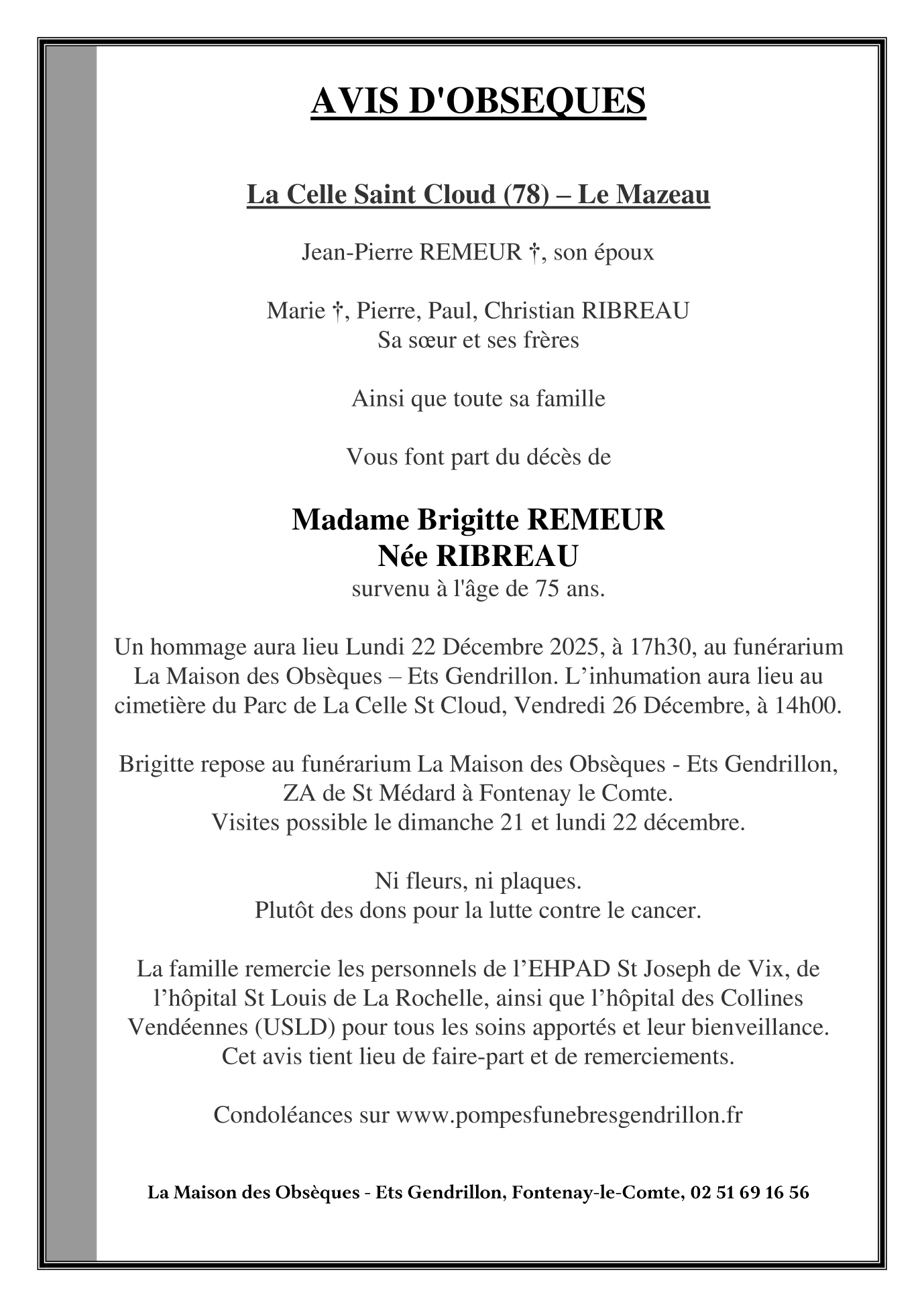 Madame Brigitte RÉMEUR née RIBREAU