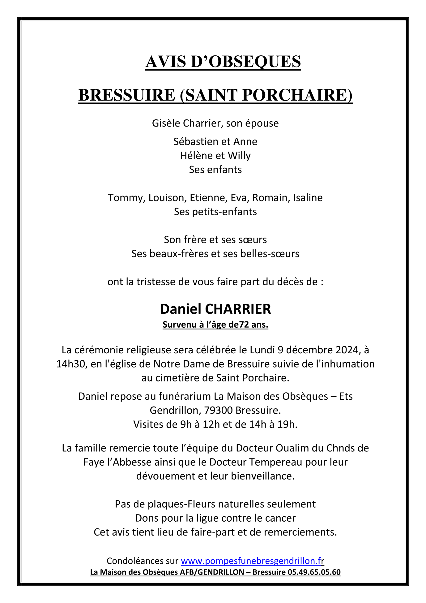 Décédé à Faye-l'Abbesse (79350, France) le jeudi 5 décembre 2024 à l'âge de 72 ans