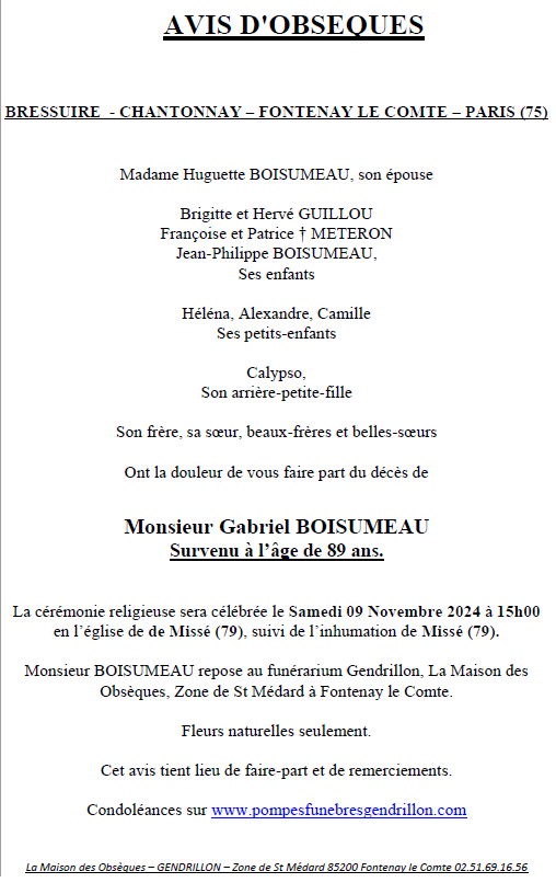 Décédé à Saint-Hilaire-des-Loges (85240, France) le mardi 5 novembre 2024 à l'âge de 89 ans