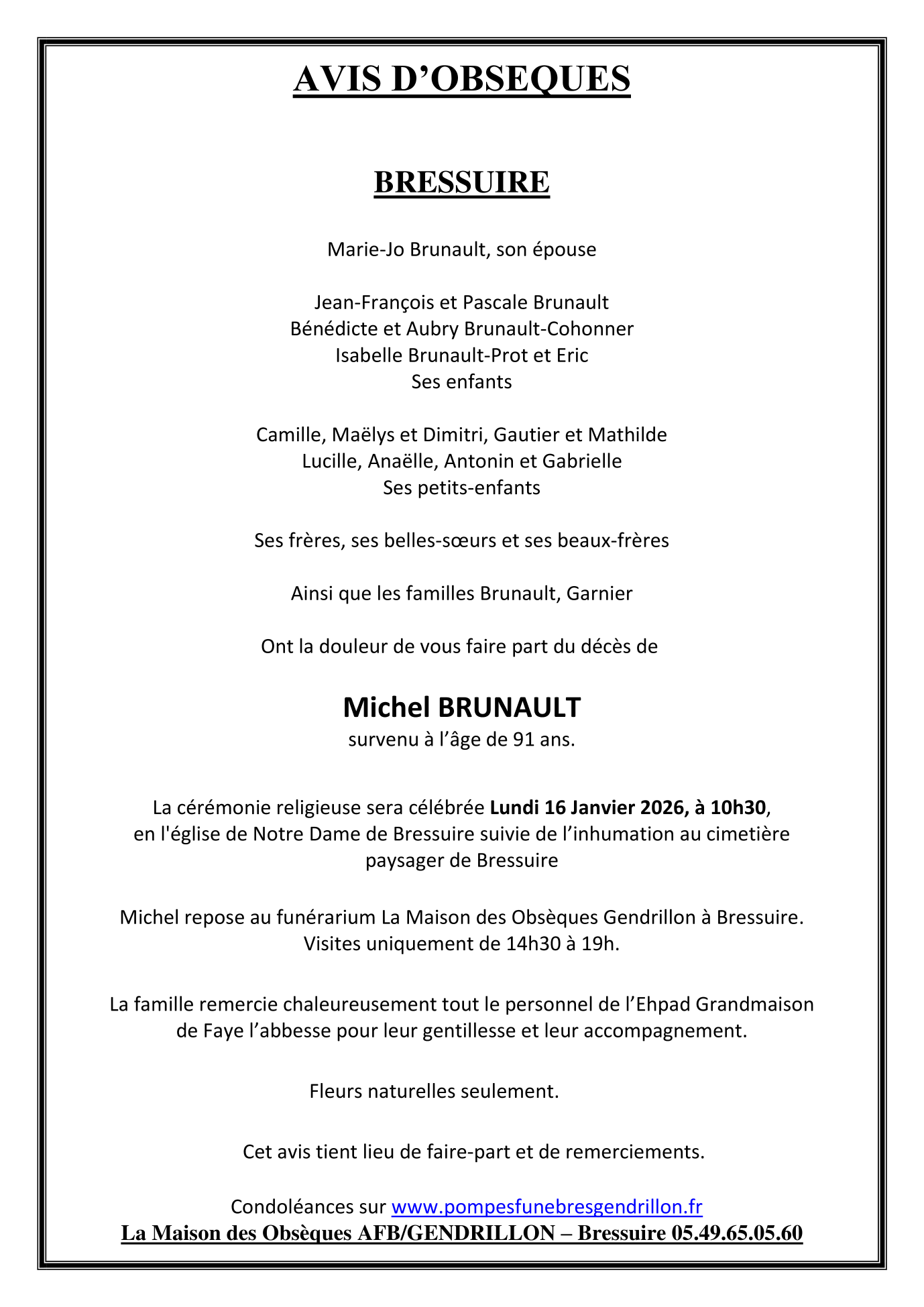 Décédé à Faye-l'Abbesse (79350, France) le jeudi 12 février 2026 à l'âge de 91 ans