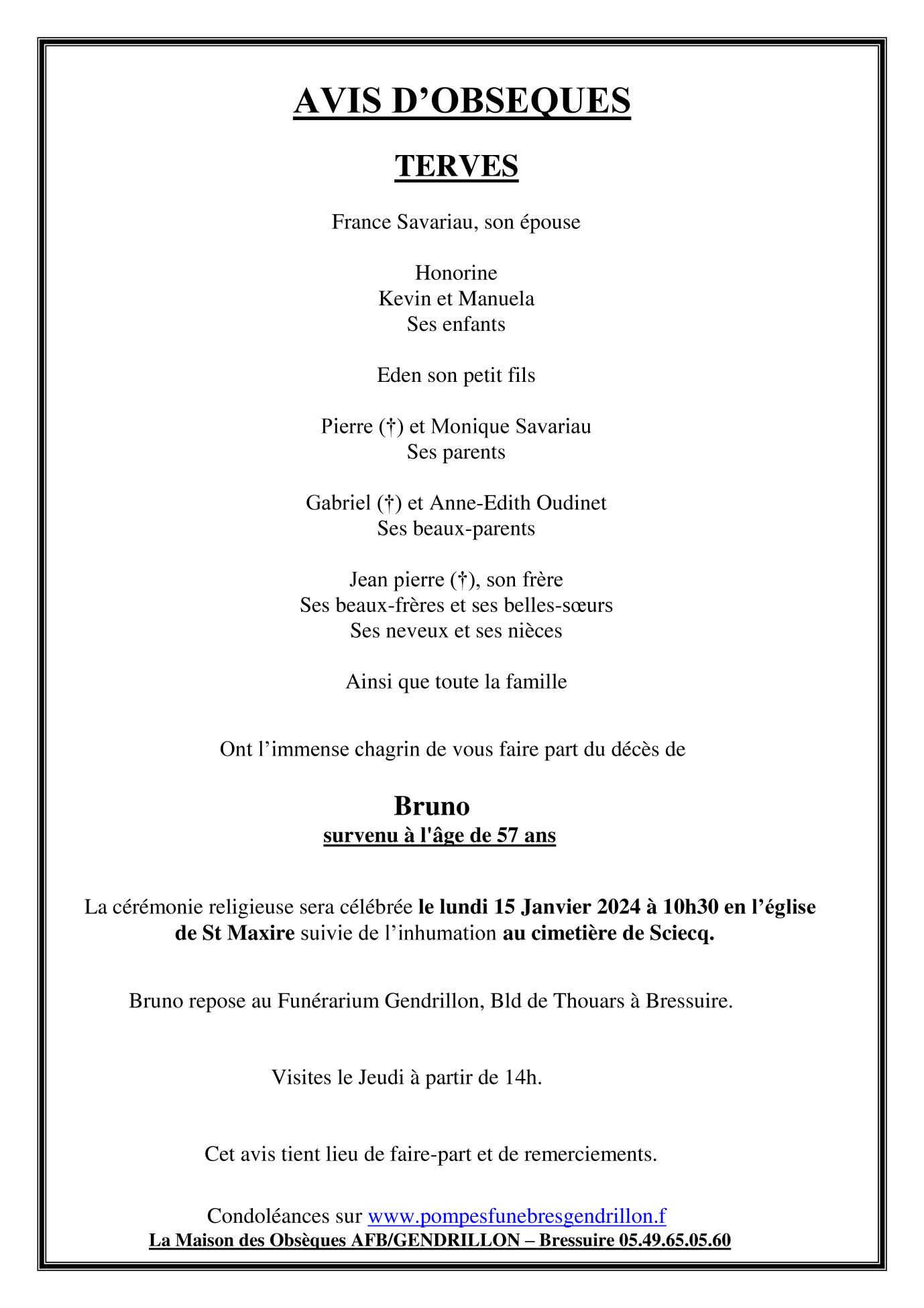 Décédé à Bressuire (79300, France) le samedi 30 décembre 2023 à l'âge de 57 ans