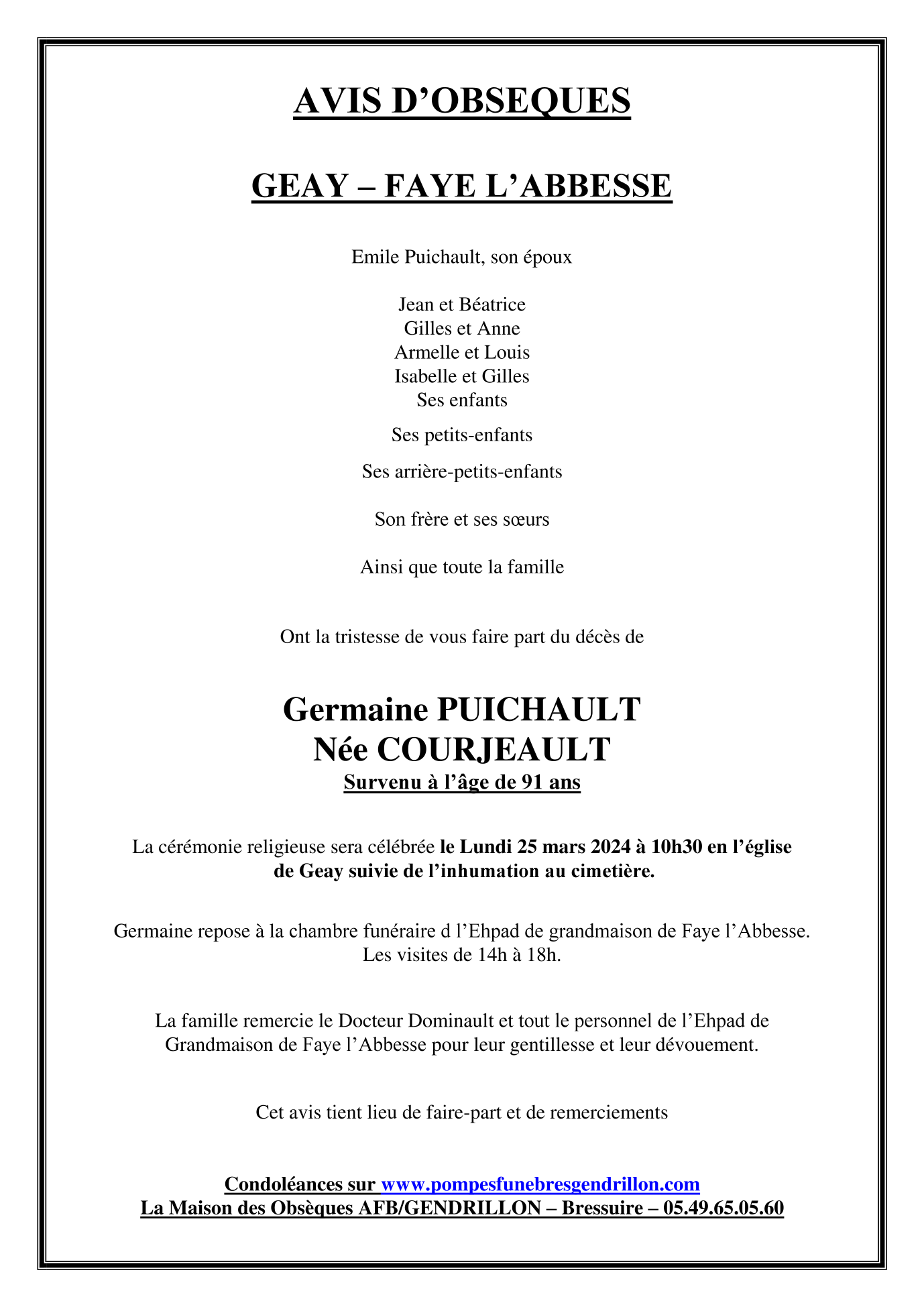 Madame Germaine PUICHAULT née COURJEAULT