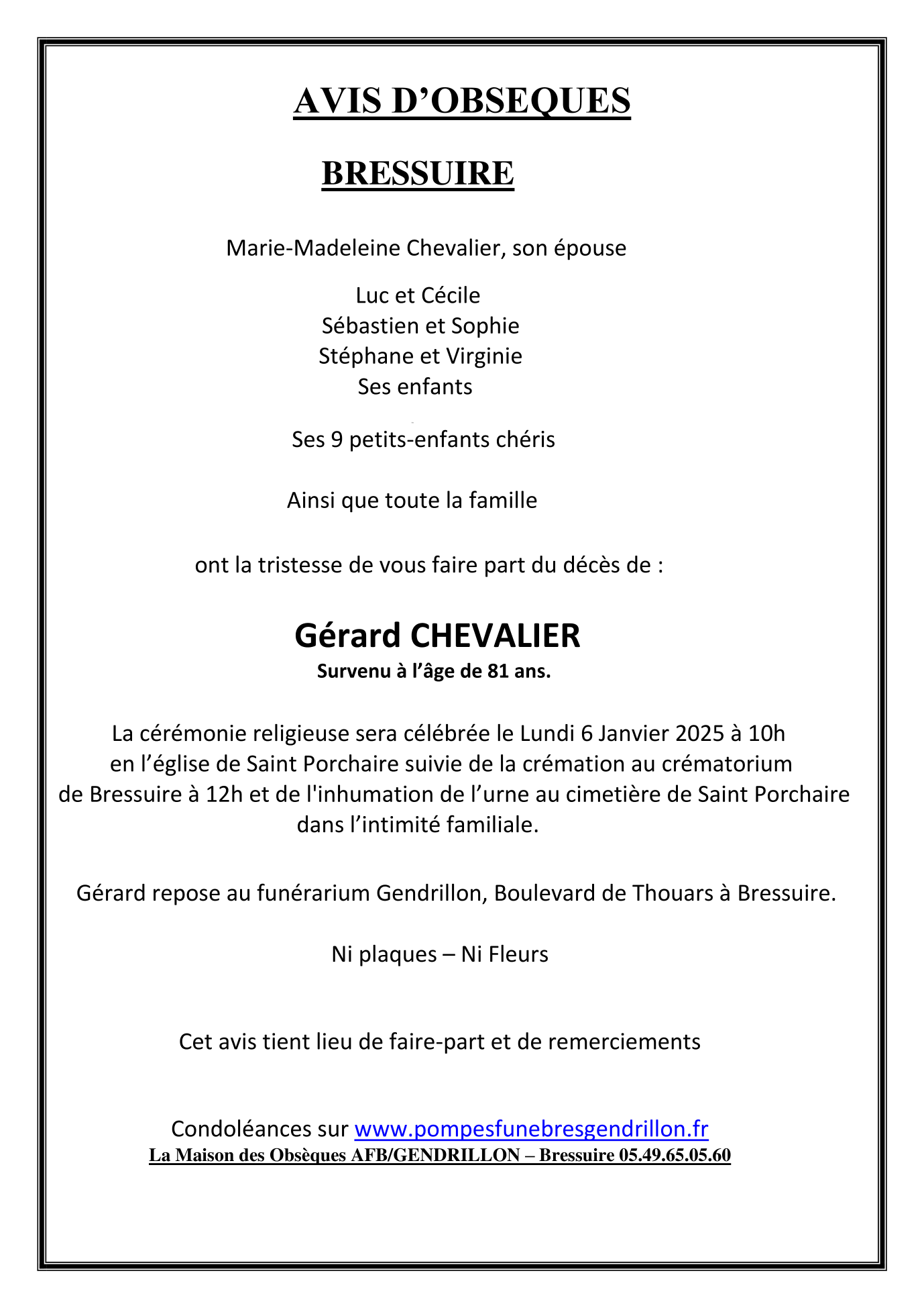 Décédé à Poitiers (86000, France) le mercredi 1 janvier 2025 à l'âge de 81 ans